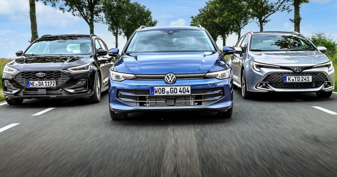 Poręczne, pojemne i oszczędne – trzy kompaktowe kombi z napędem hybrydowym. Odnowiony Volkswagen Golf Variant staje w szranki z dynamicznie usposobionym Fordem Focusem Kombi oraz oszczędną Toyotą Corollą Touring Sports. Który z tych modeli dysponuje największym zestawem zalet?
